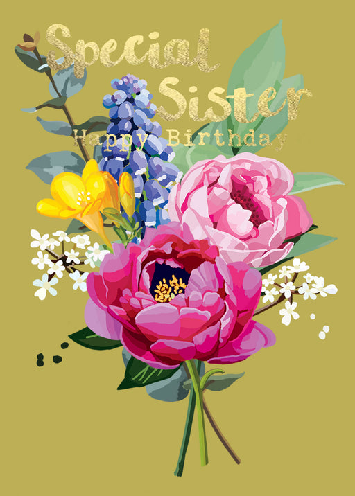 Special Sister Birthday Card - Sarah Kelleher Show a lovely lady just how special she is, a bouquet in a card. Beautifully painted flowers with f...