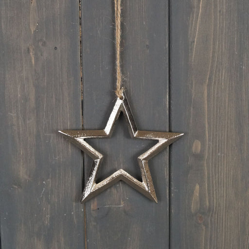 View full detailsHanging Star - Silver Metal on Jute Hanger - 3 Sizes